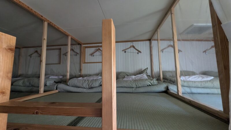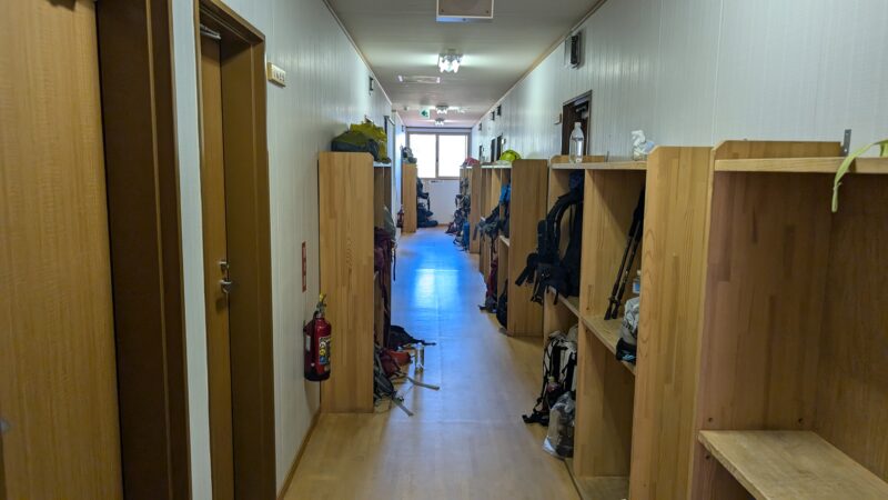 ザックは部屋に持ち込まないルール。部屋では飲食も禁止。廊下に棚があって、荷物は基本的に部屋の外に置くことになります。ちょっと面倒ではありました。