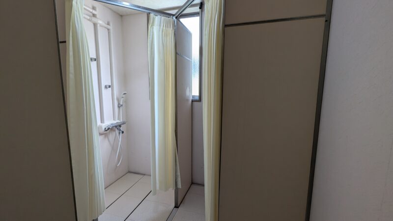 そして最も大事なのはシャワーがあること!シャワー室は男女で分かれていて、それぞれ3つ。石鹸シャンプーは使用禁止ですが、お湯が使えます!最高!