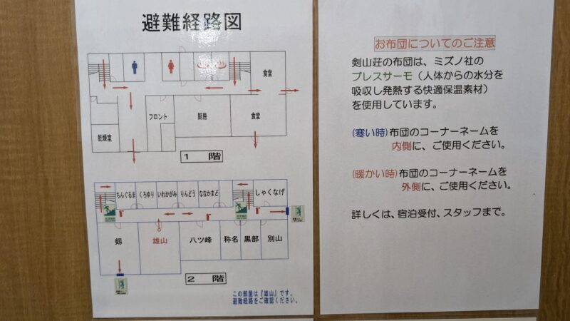 荷物を小屋内(廊下)において、剱岳に登りに行くのはOKでした。早朝にアタックザックで剱岳にピストンする計画の人が多いのでしょう。