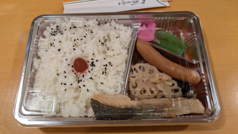 朝食は剱岳登るつもりだったのでお弁当にしました。早朝に食堂でお茶、スープが用意されていて、弁当と一緒にいただくことができます。