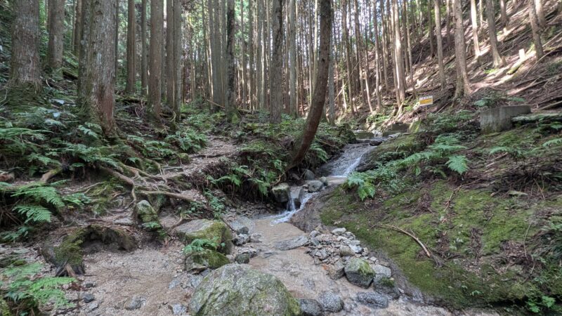 バス停名にもなっている千早本道の登山口は通り過ぎて、ツツジオ谷ルートを登ります。