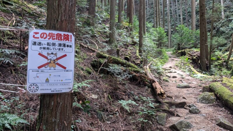 ツツジオ谷ルートは、どうやら推奨してないルートのようで、注意喚起や通行をご遠慮くださいといった看板があったので注意。ずっと沢沿いで、渡渉やちょっとしたロープ箇所、倒木があったりしましたが、基本は歩きやすかったです。他に歩いている人もいました。