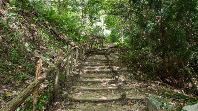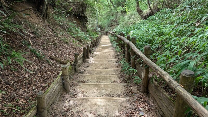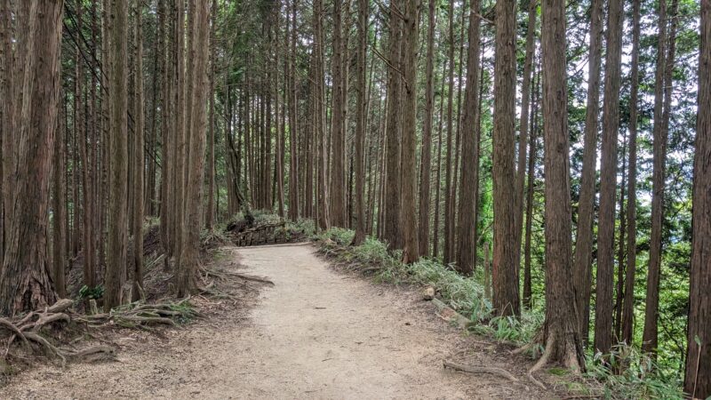 12:30、千早本道で下山開始。とにかくよく整備された道で、9割以上は段差控え目な階段が続きます。私でも爆速で下山できました。