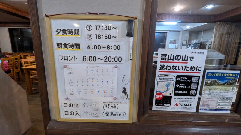 山小屋感が薄いといえば、夕食は1回目が17:30~、直食は6:00~ということで、山小屋にして遅めかなと。