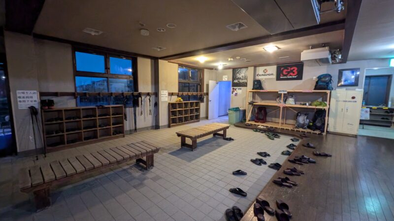 ・玄関から降りると、広い乾燥室があります。私が宿泊した日は雨だったので助かりました。